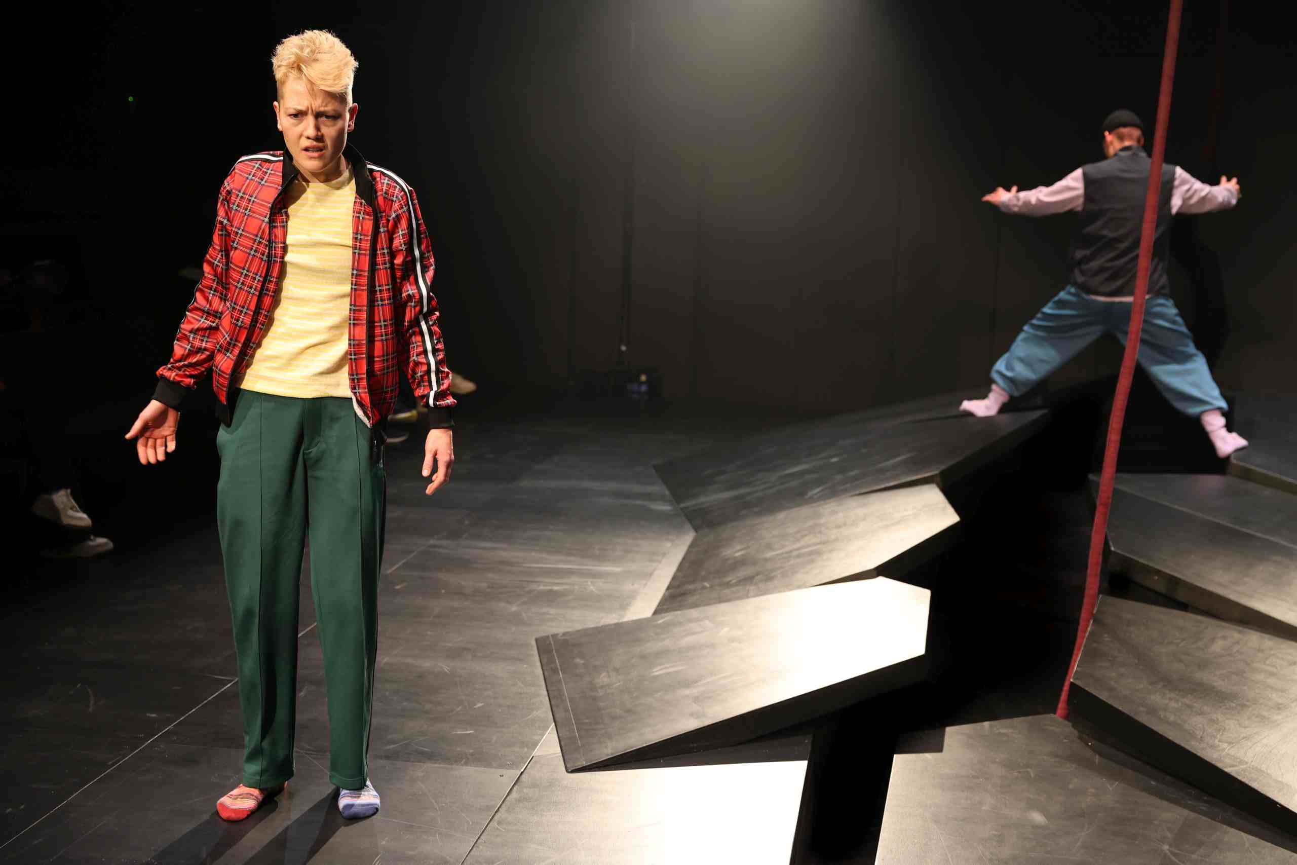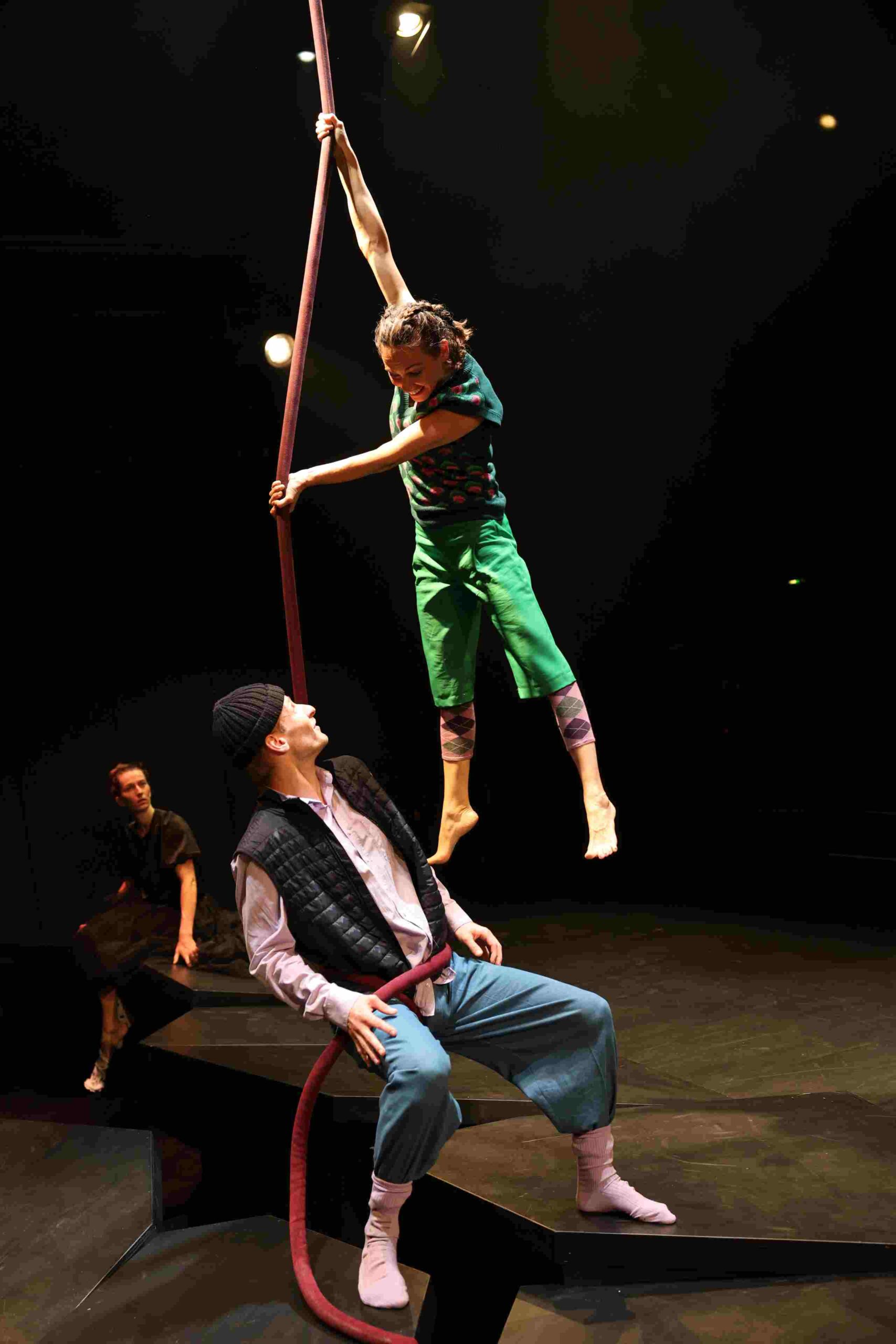 Director Josie Dale-Jones is developing this play together with the ensemble. With lots of movement, they will jointly explore the themes of fear and change. For this production, the JES ensemble is joined on and above the stage by two aerial acrobats.