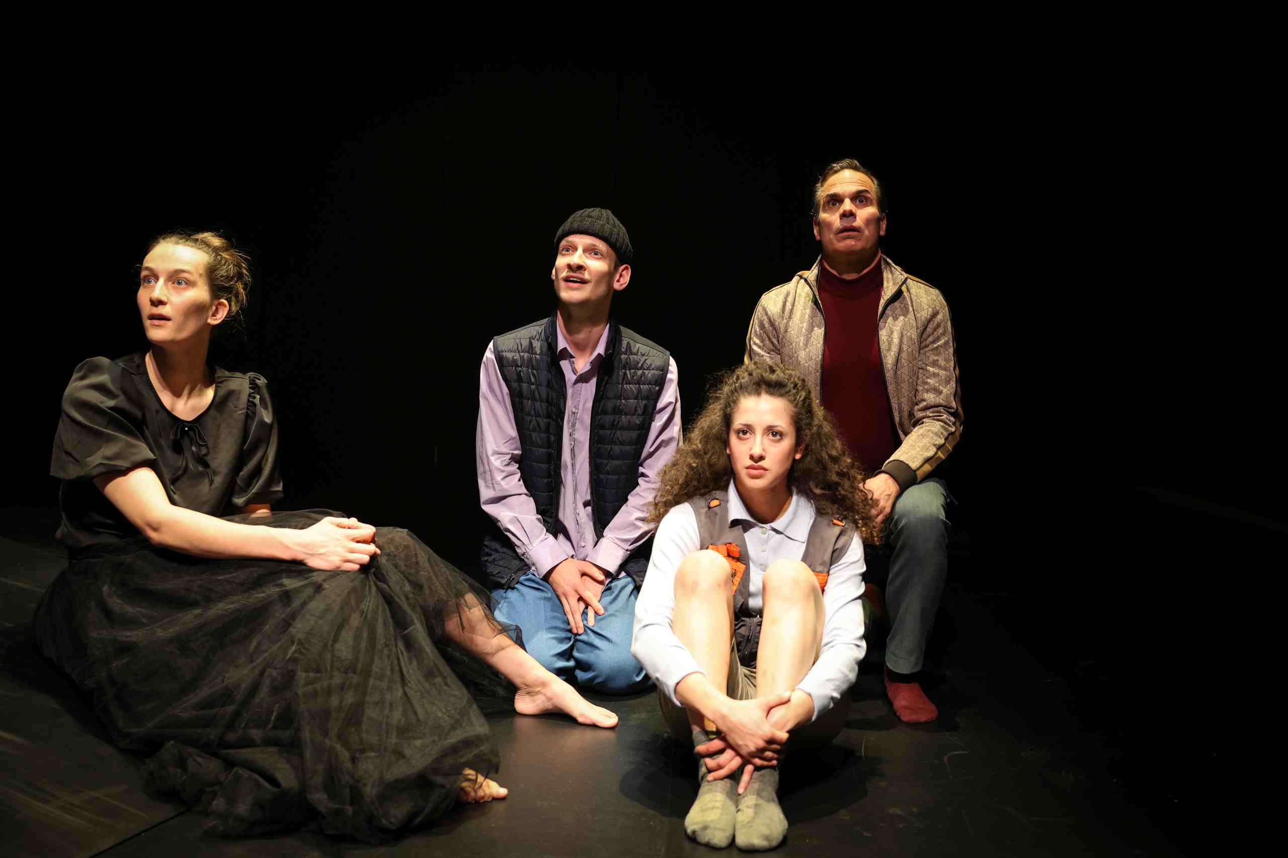 – Die Schauspieler*innen betreten die Bühne von verschiedenen Seiten und aus dem Hintergrund.